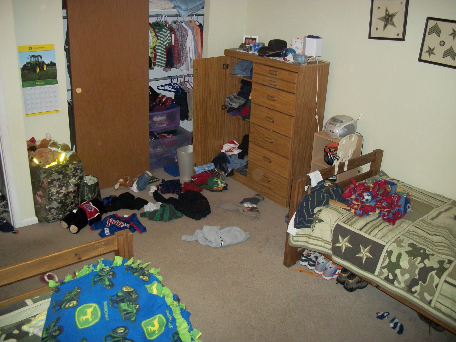 Below is the boys room. I had already begun picking up in there before I took the picture! Still, I think Spike's dresser threw up! Oh my!